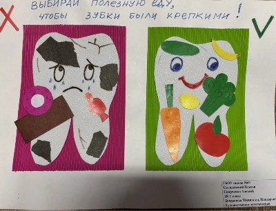 Рисунок «Выбирай полезную еду, чтобы зубки были крепкими!» |
